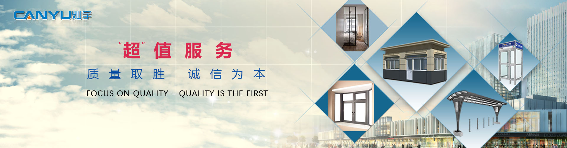 蘇州燦宇新型裝飾建材有限公司是家專門從事新型節能裝飾建材研發,制造,銷售安裝為一體的創新型公司,主營崗亭、車棚、隔斷、門窗、ATM防護艙、五金配件等。經過多年的發展隨著公司的壯大業務也更具多元化專業化,下設崗亭事業部、車棚事業部、隔斷事業部、門窗事業部、ATM防護艙事業部、五金配件事業部等部門來滿足社會各界的不同需要,每個部門獨立自主開展業務,形成良性的競爭。